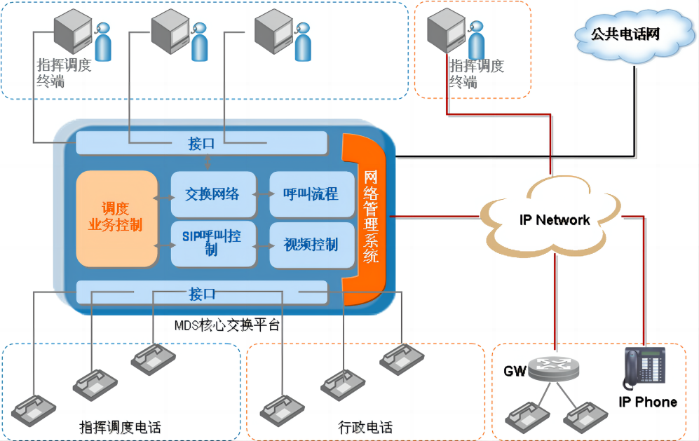MDS3400调度通信系统基于TDM+IP双平面的独特架构设计,支持办公电话、调度电话及IP多媒体等业务接入,满足专网用户调度通信需求,同时对技术演进进行平滑升级,保证专用通信高安全可靠性。该系统已经成功应用在铁路、地铁、石油、石化、钢铁、煤炭、政府、电力等行业,使用达数千套,是调度市场知名品牌。系统具有强大调度指挥功能,以其开放性、兼容性、高可靠性的设计为大企业客户给予安全可靠的产品方案,让指挥调度业务更加安全、快捷、高效。